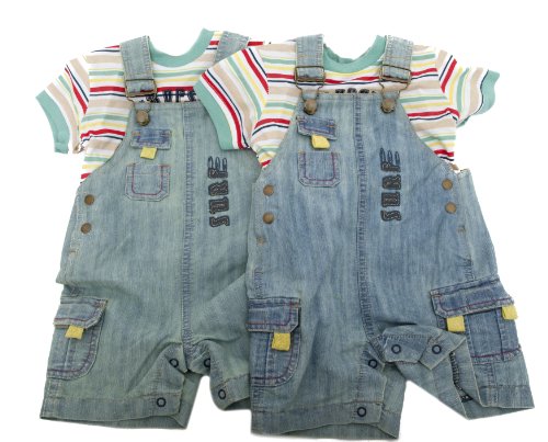 Baby Clothing Boys Surf Design Dungarees and Short Sleeve T-Shirt Top Set (12-18 Months) (Denim Blue)