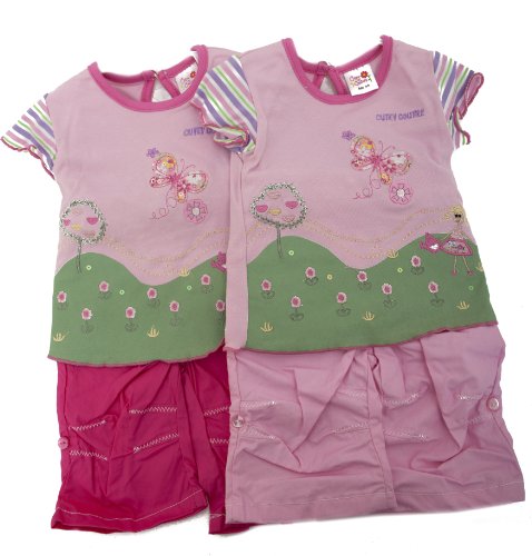 Baby Girls Embroidered Short Sleeve T-Shirt and Bottoms Clothing Set with Headband (9-12 Months) (Pink)
