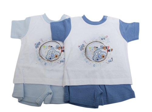Baby Boys Short Sleeve Car Design Embroidered Baby Clothing Set (6-12 Months) (Light Blue)