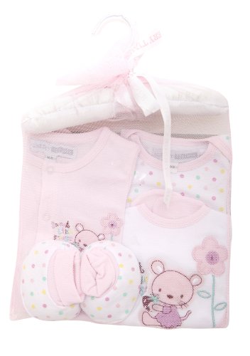 Baby Girls Animal Design Embroidered 6 Piece Gift Set (Newborn) (Pink)