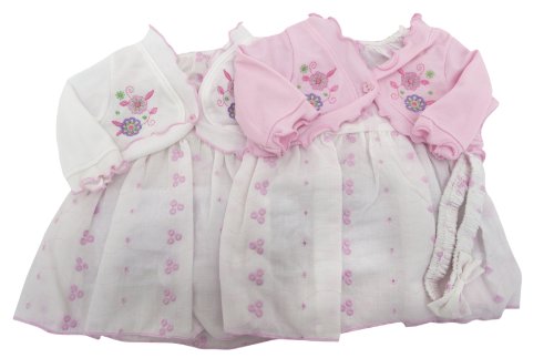 Baby Girls Embroidered Dress and Long Sleeve Cardigan Clothing Set with Headband (6-9 Months) (White)