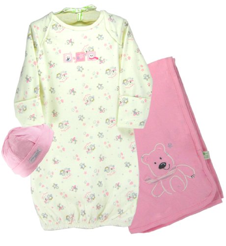 Adorable "winter patterned" 3 piece set with embroidered fall and winter characters. Includes gown, blanket, and hat! Free of toxins and chemicals to keep your baby safe, and softer than ever before. Comes with decorative padded hanger and 100% cotton guaranteed. You will feel good buying, your baby will feel good wearing it! Makes a wonderful gift as well!