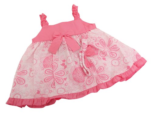 Baby Girl Pink Flower Design Dress and Pants Baby Clothing Set with Headband (12-18 Months) (Pink)