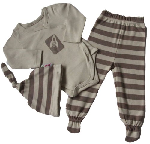 Minene New Born Gift Set with Trousers with Feet and Matching Hat (3-6 months,Cream/Brown)