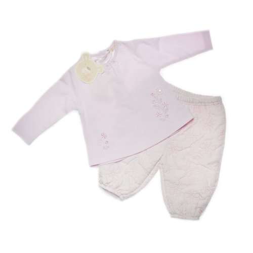 Zip Zap Girls Cotton 2 Piece Set, Pink A-Line T-Shirt with Pleat, All Over Embroidery Microfibre Trousers with Wadding and Lining (Marshmallow, 0 to 3 Months)