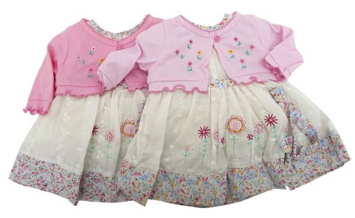 Baby Girl 3 Piece Flower Design Cardigan, Dress and Headband Baby Clothing Set (0-3 Months) (Pink)