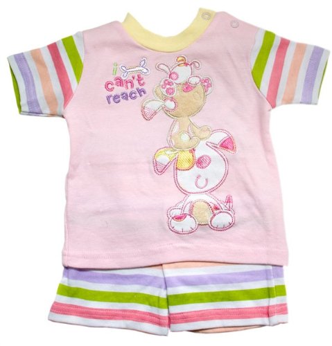 Baby Girls Clothing, Dog Design T-Shirt & Shorts Set (Pink) (12-18 months) (Pink)