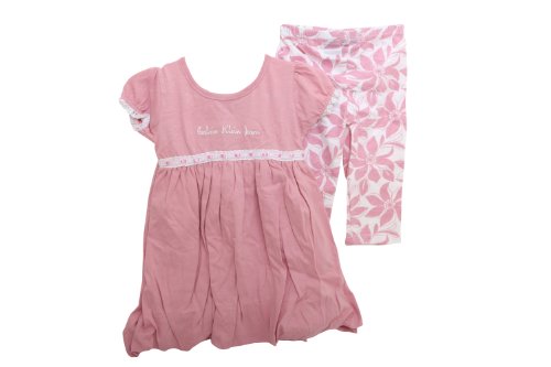 Calvin Klein Baby Girls Short Sleeve Pink Dress and Leggings Baby Clothing Set (2-3 year old) (Pink)
