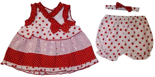 Isabelle Rose Dress Set and Head Band with Bloomer for 0 - 9 Months (2 Pieces, Red/ Pink/ Navy)