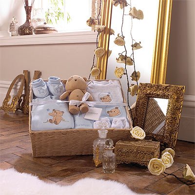 Izziwotnot Occasion 5 Piece Luxury Gift Basket, Forget-Me-Not Blue, Newborn