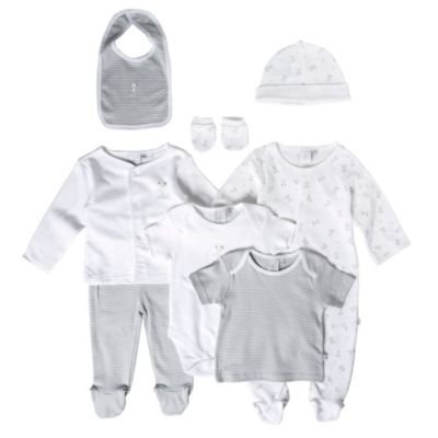This set from Junior J by Jasper Conran comes with a bib, a hat, socks, a set of striped bottoms with an elasticated waistband, a white top with poppers along the centre, a body top with poppers along the crotch, a short sleeve pyjama top and a sleepsuit with poppers along the front and legs All are made from soft-touch cotton jersey-A cute comfortable night wear essential made from soft-touch cotton jersey this white teddy bear print boy's eight-piece set from Junior J by Jasper Conran comes with a bib, a hat, socks, a set of striped bottoms with an elasticated waistband, a white top with poppers along the centre, a body top with poppers along the crotch, a short sleeve pyjama top and a sleepsuit with poppers along the front and legs.
