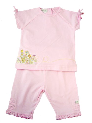 Lovely cotton jersey 2 peice outfit perfect for the summeer. Delicate embroidered detail on the top and the little trousers/leggings have shirred detail on legs