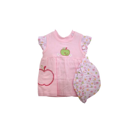Baby Girls Fruit Design Embroidered Dress, Top and Hat Baby Clothing Set (0-3 Months) (Pink)