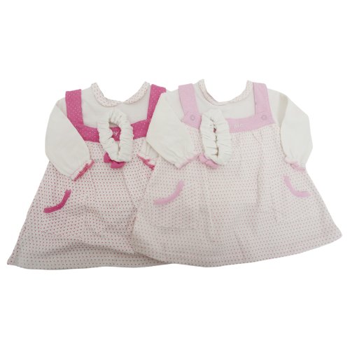 Baby Girl 3 Piece Star Design Long Sleeve Top And Dress Set with Headband (3-6 Months) (Cream And Pink)