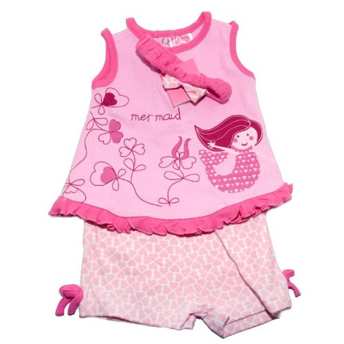 Baby Girl Mermaid Design T-Shirt & Shorts Set (Pink) (3-6 months) (Pink)