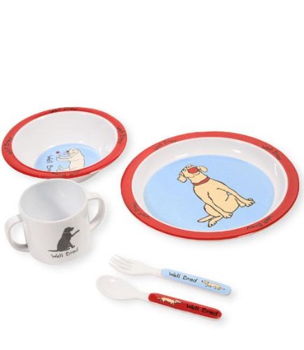 Let your little one enjoy their mealtimes a bit more with our 100% Melamine plate set includes a plate, bowl, mug, fork and spoon. Each set is packaged in a printed card giftbox.