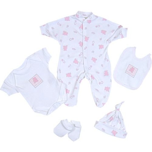 Premature Early Baby Clothes 5 Piece Set - Sleepsuit, Bodysuit, Hat,Mittens & Bib 1.5lb - 7.5lb Pink