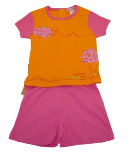 Bright Bots Girls Tee Shirt and Shorts 2 Piece Set in Orange and Bright Pink size 12-18 months