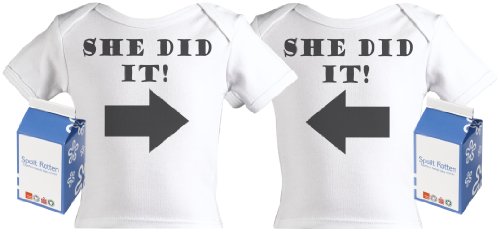 Spoilt Rotten - She Did It And She Did It Twin Set Funny Baby Tee Shirt 100% Organic Sizes 6-12 months + in funky Milk Carton WHITE