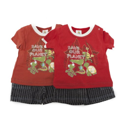 Baby Boys Save Our Planet Animal Design Short Sleeve T-Shirt and Shorts Set (12-18 Months) (Orange/Brown)