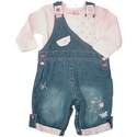 Really lovely vintage style dungaree set comprising of an all over flower print cotton top and dungaree with flower embroidery and flower print trims.