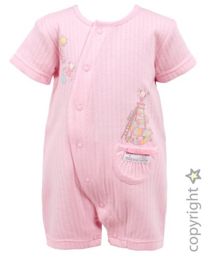 Romper is made from soft drop needle cotton jersey. There is light print of "Tilly" skipping and coming out of pocket up a ladder. The hat is made from soft cotton elastane with an adjustable chin strap has the print of a cloud and sun on the crown. Great for the summer and as a gift.