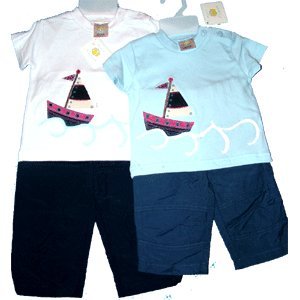 Lovely two piece suit for that special baby. Ideal for spring and summer.Short trousers with elasticated waistband.100% Cotton and machine washable.