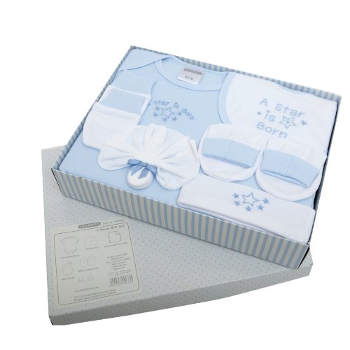 Baby Gift Set, A Star Is Born Design Embroidered 6 Piece Baby Gift Set (0-3 months) (Blue and White)
