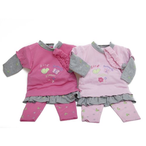 Baby Girl 4 Piece Animals Long Sleeve Top, Skirt, Leggings and Headband Set (6-12 Months) (Baby Pink And Grey)